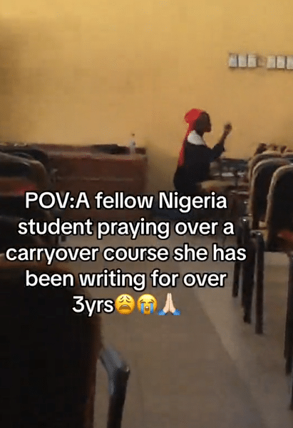 Video of female student praying over carryover course she’s been retaking for years stirs emotions online