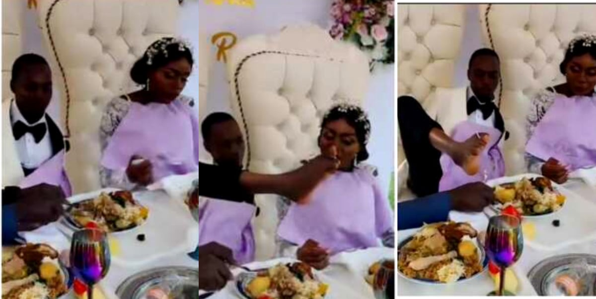 A video of a young groom has gone viral after he was seen feeding his newly married bride with his leg.