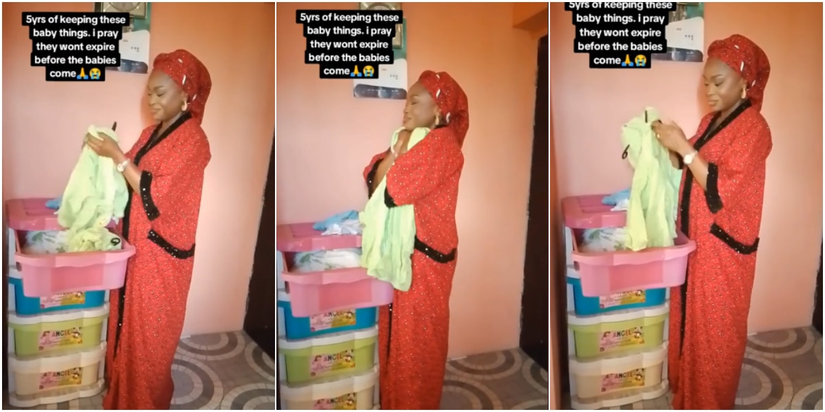 Video of lady looking for fruit of the womb holding onto baby items she bought 5 years ago in hope of pregnancy stirs emotions