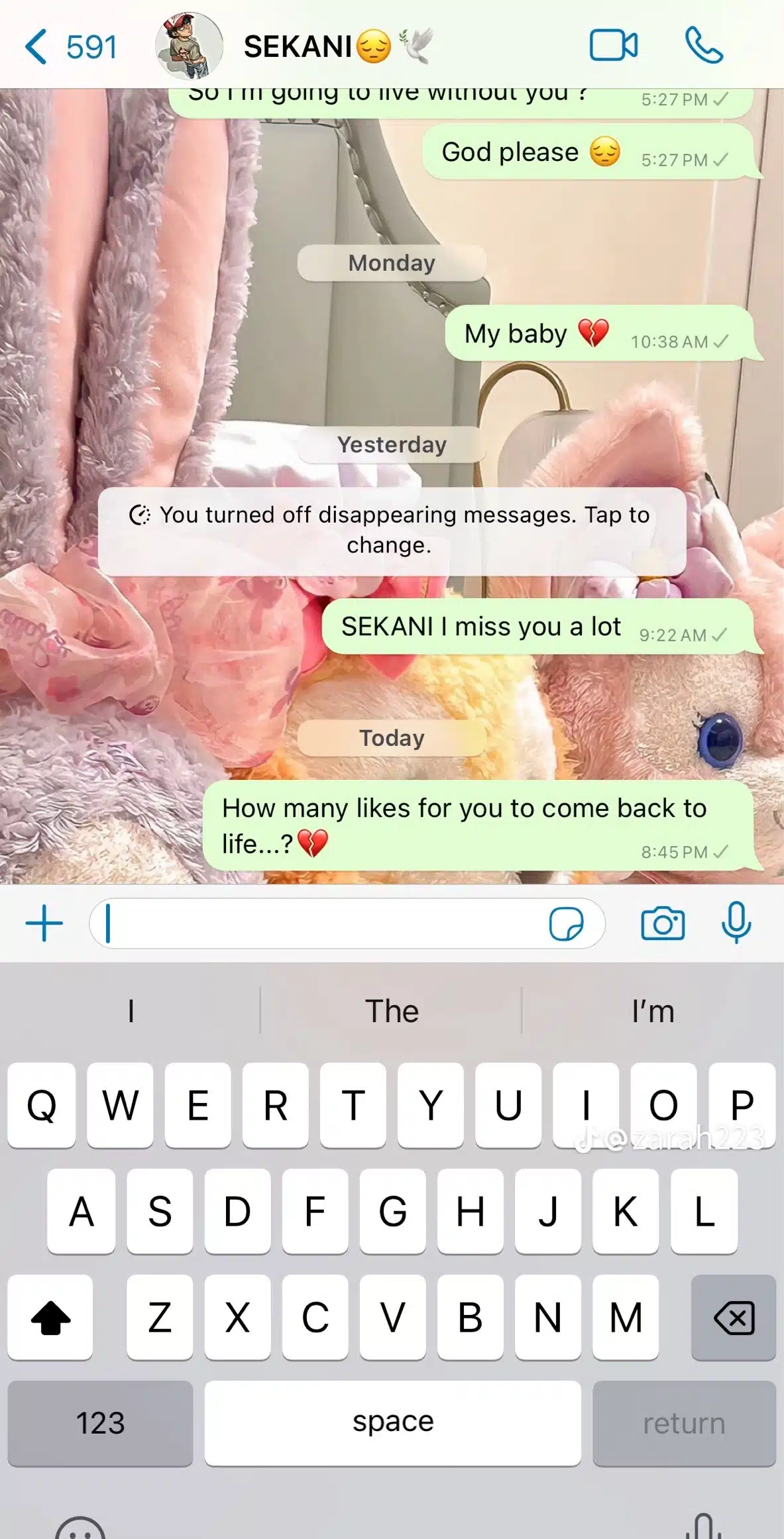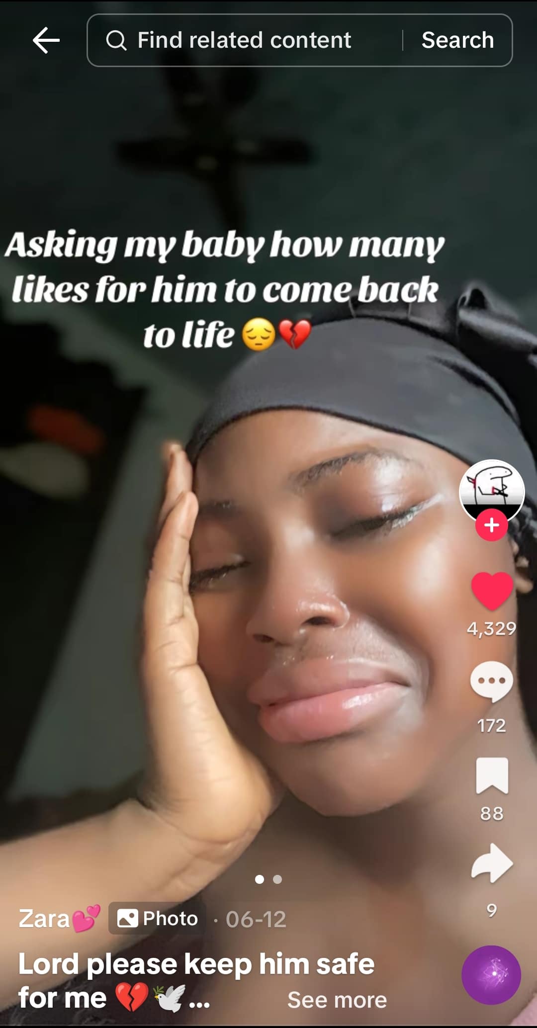 The message read: “Asking my baby how many likes he needs to come back to life.”