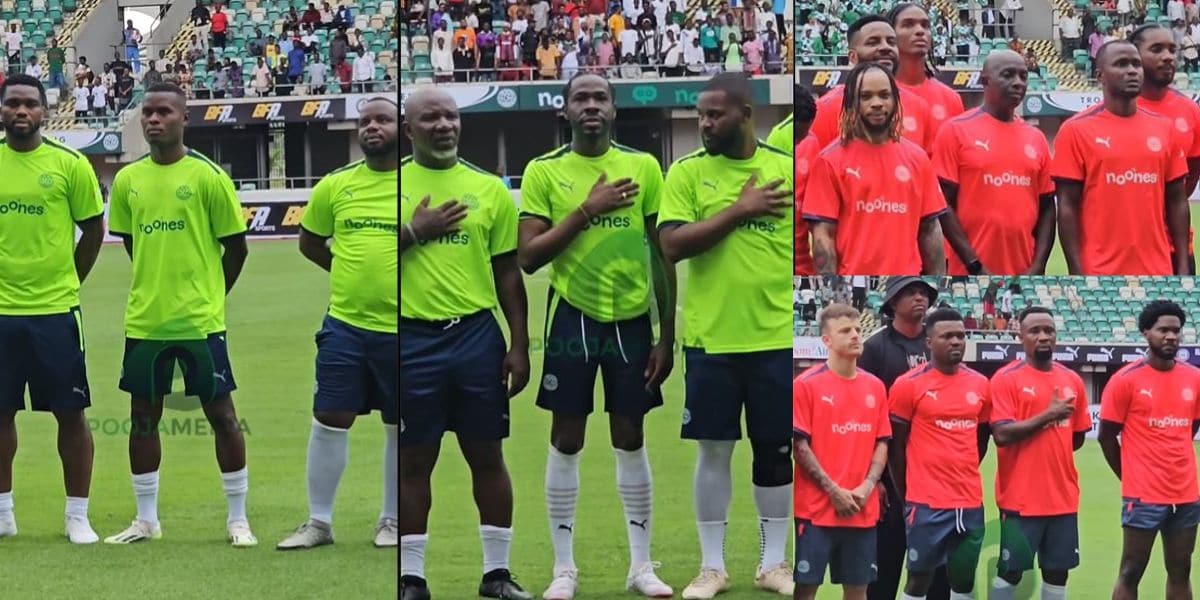 Several public figures at the game were spotted struggling to sing along when the anthem was played, which was one of the highlights of the Troots-Ekong charity match.