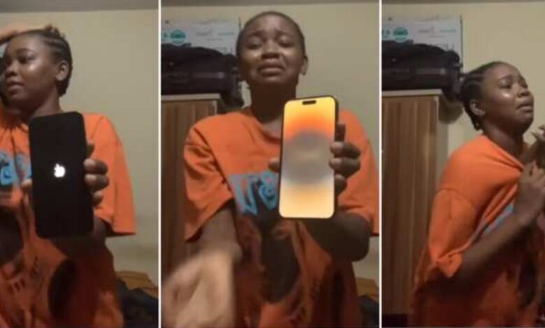 Viral garri-drinking lady sheds tears of joy as she’s gifted iPhone 14 Pro Max shortly after Davido’s N2m gift (Video)