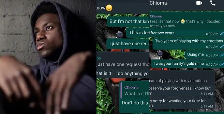 Man shares chat whith girlfriend who broke up with him after years of spending on her and family members