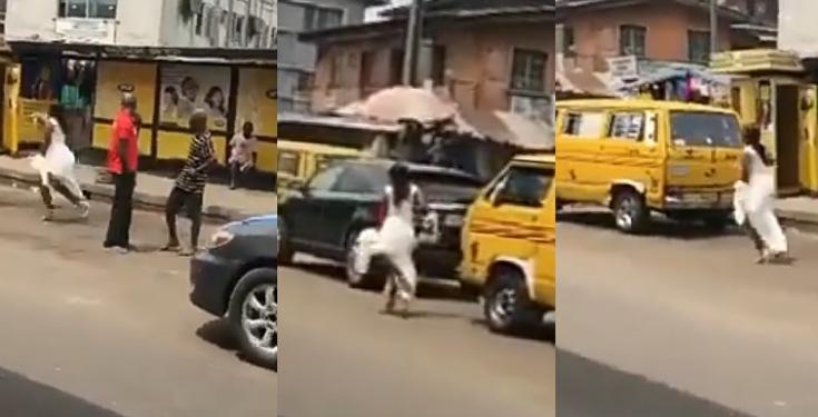 “I go talk, I go talk” – Bride on her wedding gown screams while running helplessly on the road (Video)