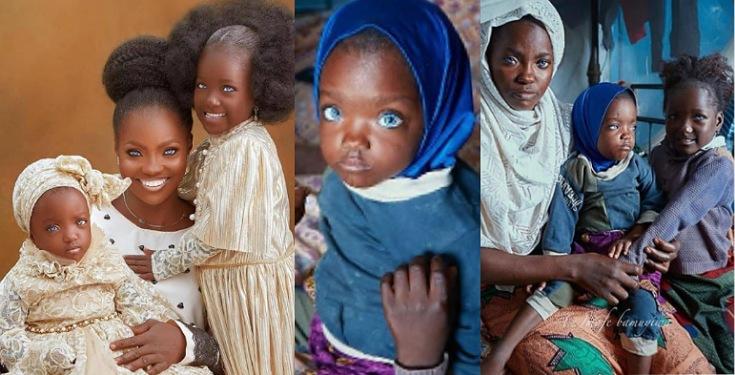 Beautiful new photos of woman with blue eyes and her daughters who were abandoned by their father