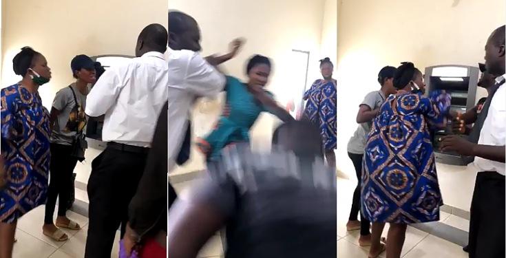Drama as man slaps lady at the bank during argument over who came first (Video)