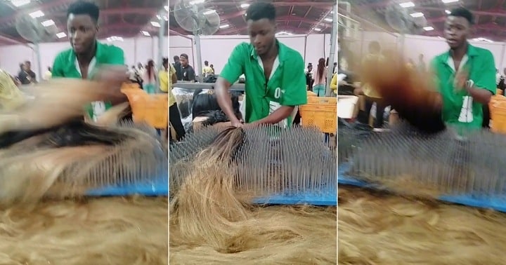 “Ontop N1200 per day” – Video of Nigerian man working at hair factory stirs reactions