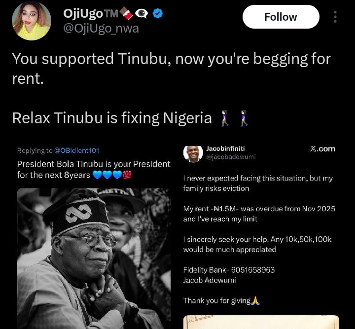 Viral throwback: Man who backed Tinubu’s eight-year rule now begs for ₦1.5m rent help