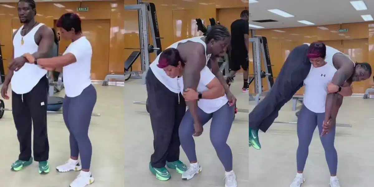 The female bodybuilder, @fit_amuziejennifer was seen lifting Verydarkman in a fireman style.