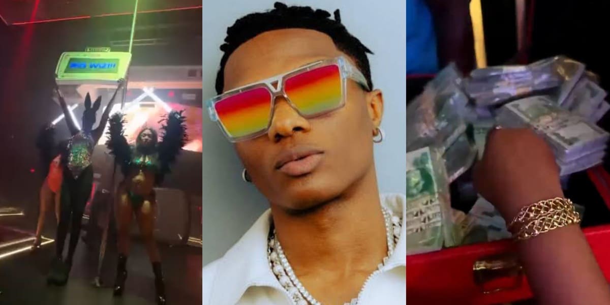 “Waste of money” – Knock as Wizkid storms Lagos strip club with briefcase filled with bundles of naira notes