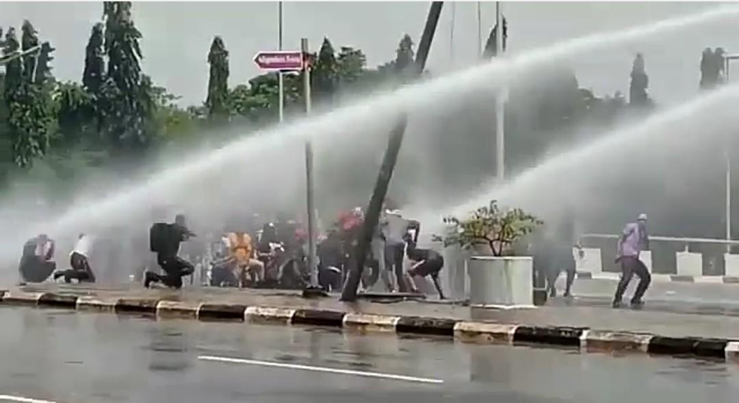 Watch Video Of Nigerian Police Blasting Peaceful Protesters With Water Cannon In Abuja
