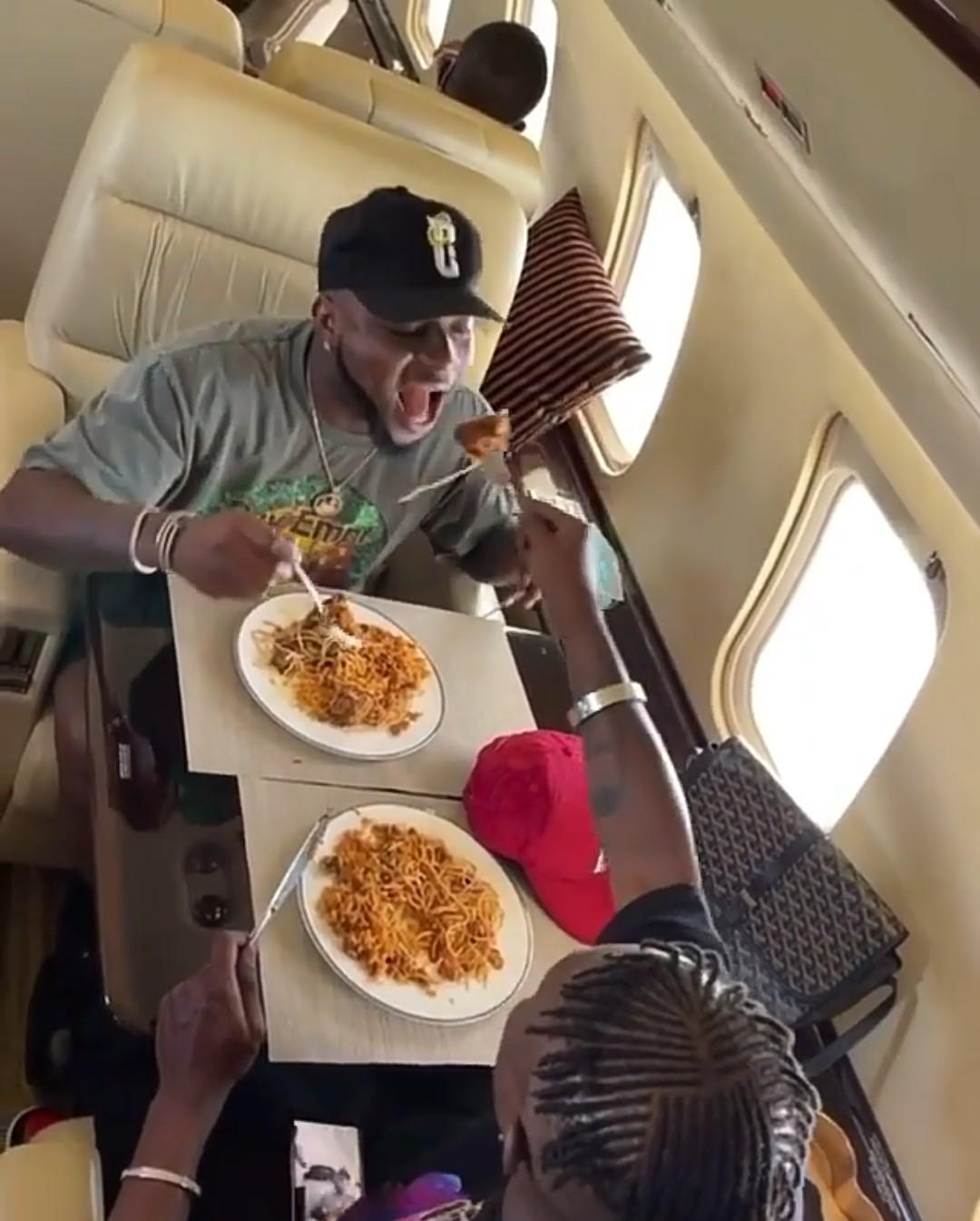 Watch video of Zlatan Ibile feeding Davido inside a private Jet
