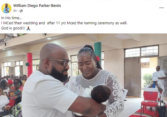 The couple expressed deep gratitude to God during the christening and dedication ceremony, recounting the emotional toll their struggle with infertility had taken on their marriage, work, and education.