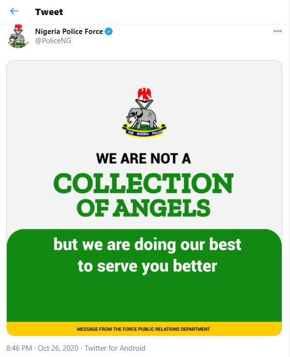 The Nigerian police via its official Twitter handle, @PoliceNG, has said that they are not a collection of angels.