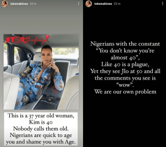 “This is a 37-year-old woman, Kim is 4o Nobody calls them old. Nigerians are quick to age you and shame you with Age.