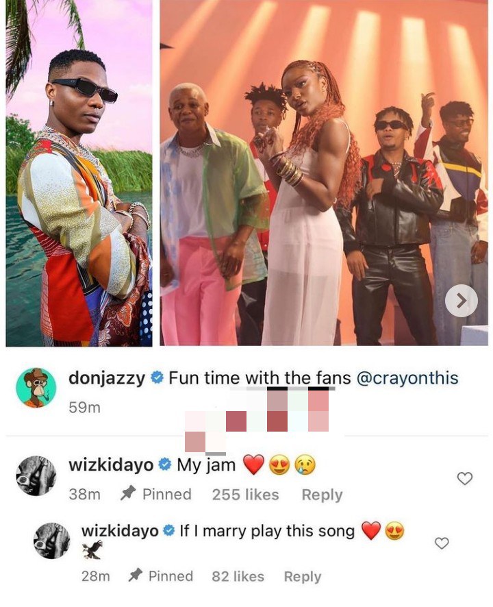 Wizkid’s comment read: “This is my jam, if I marry play this song.”