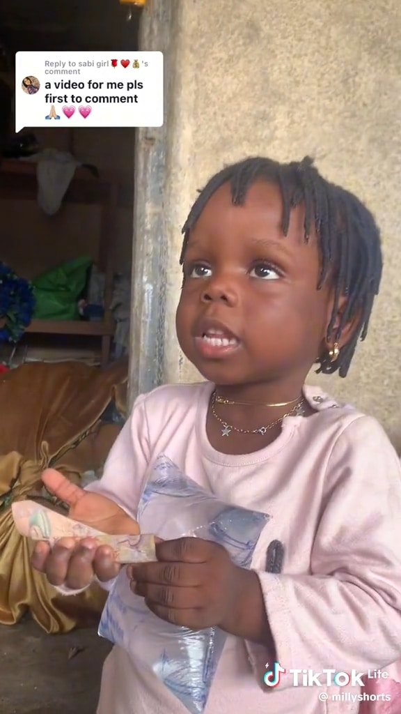 In a recent TikTok video, a young girl was spotted engaging in conversation with an unidentified man while confidently speaking in clear pidgin English.
