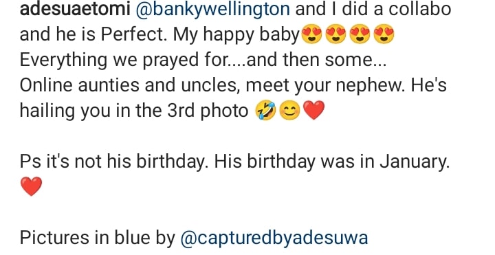 “We did a collabo and it was perfect” – Fans gush as Banky W and wife, Adesua reveal son’s face (Photos)