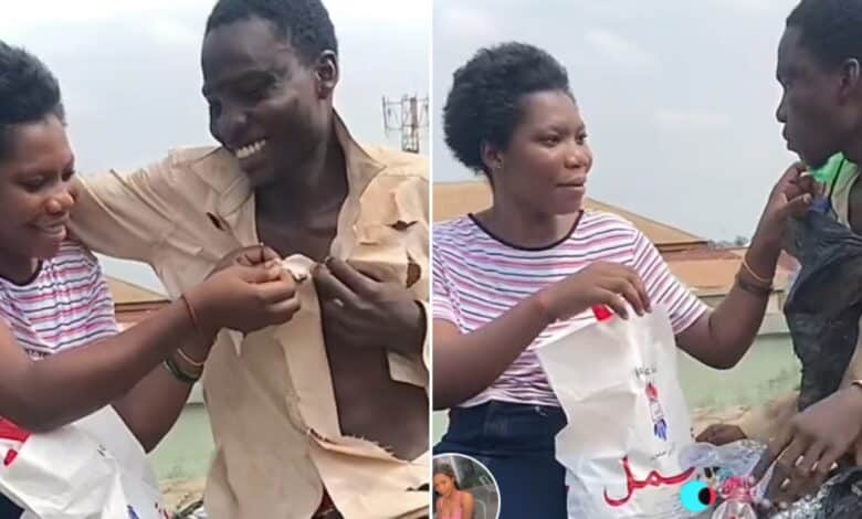 A heartwarming video has shown the moment a young lady visited a mad man to give him food and care for him.