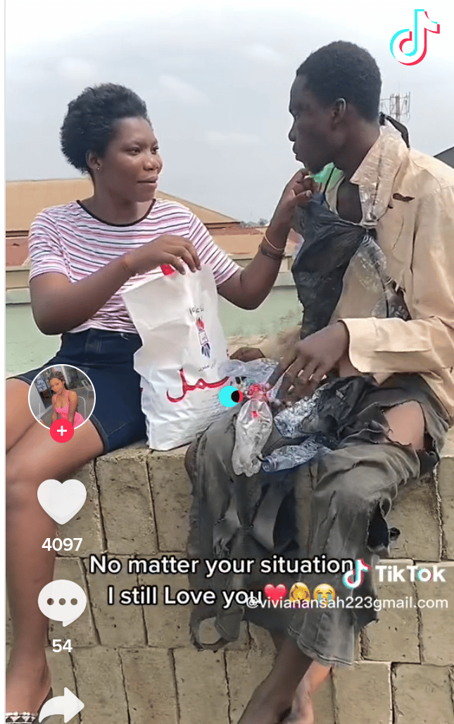 The short clip captured the lady going to the scene with food for the mentally challenged man whom she claimed was her boyfriend.