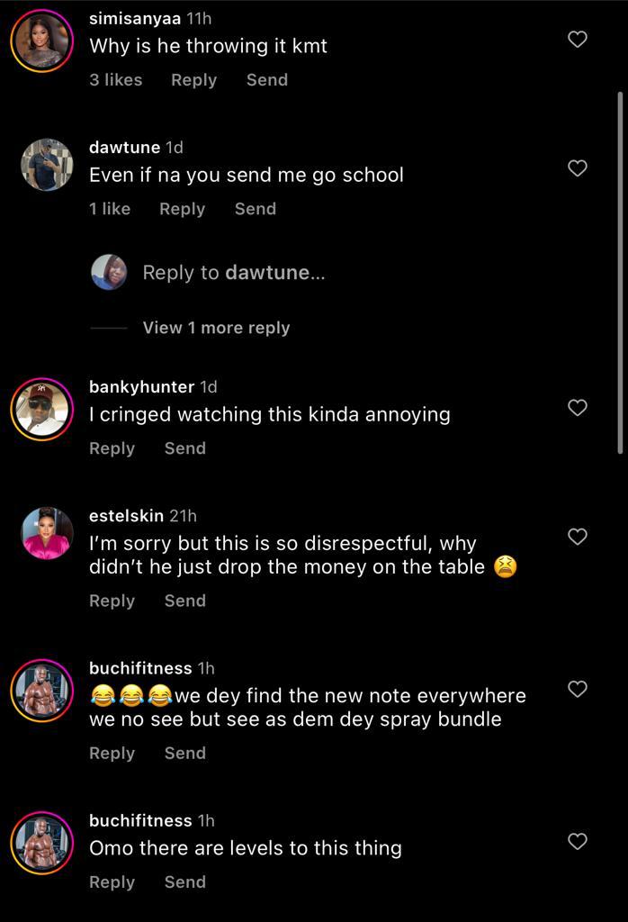 He then started to throw money bundles at the newlyweds, who just sat there and smiled. Although the bride seemed a bit uncomfortable, her groom appeared calm and wore a smile.