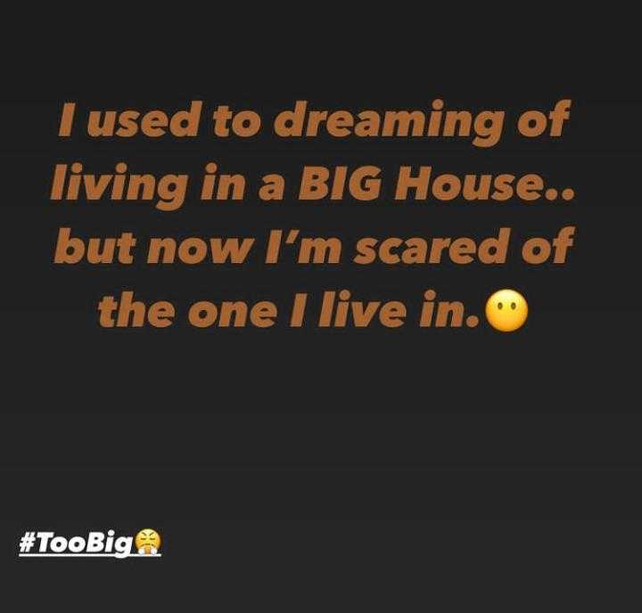 According to Tacha, she gets scared of living inside her house because it’s too big for her.