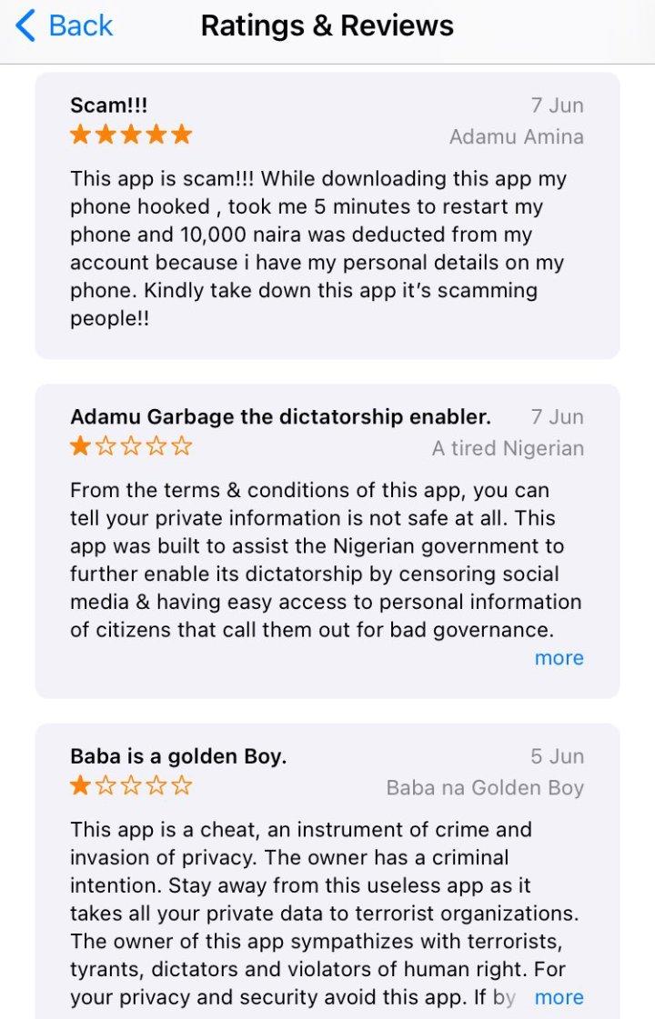 However, Nigerians who downloaded the app have heaped lots of negative reviews on the app via the Google play store. Thus, leading to the removal of the app.
