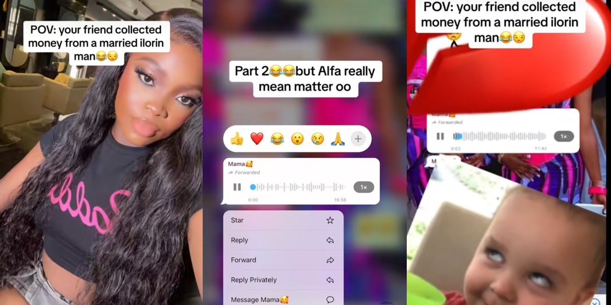 This information is contained in a video captioned: “You collected money from a married Ilorin man.”