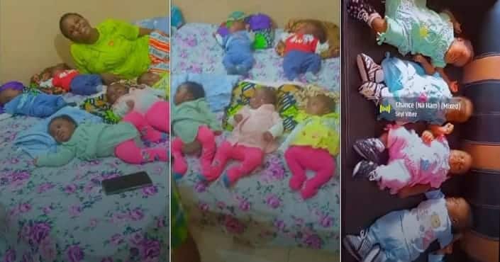 Netizens on TikTok have gushed over a heartwarming video of a young Nigerian woman showing off her quintuplets.