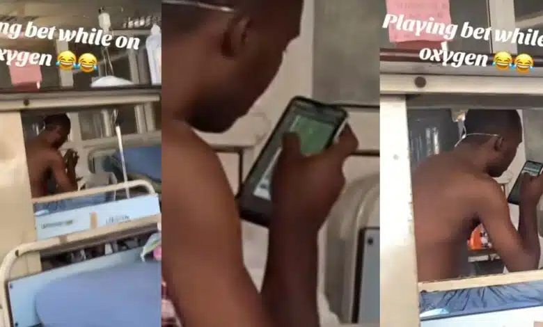 A Nigerian man, who was seen receiving oxygen in an unnamed hospital, caught people’s attention as he played online bets on the Bet9ja website while undergoing treatment.