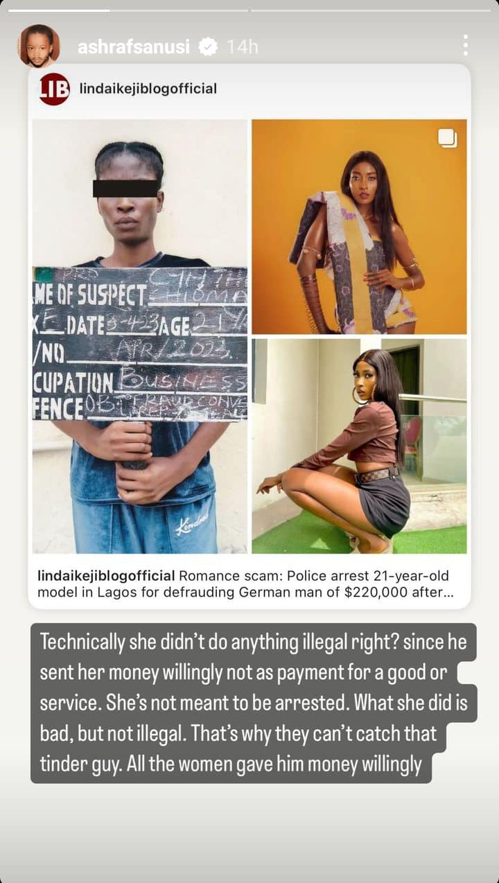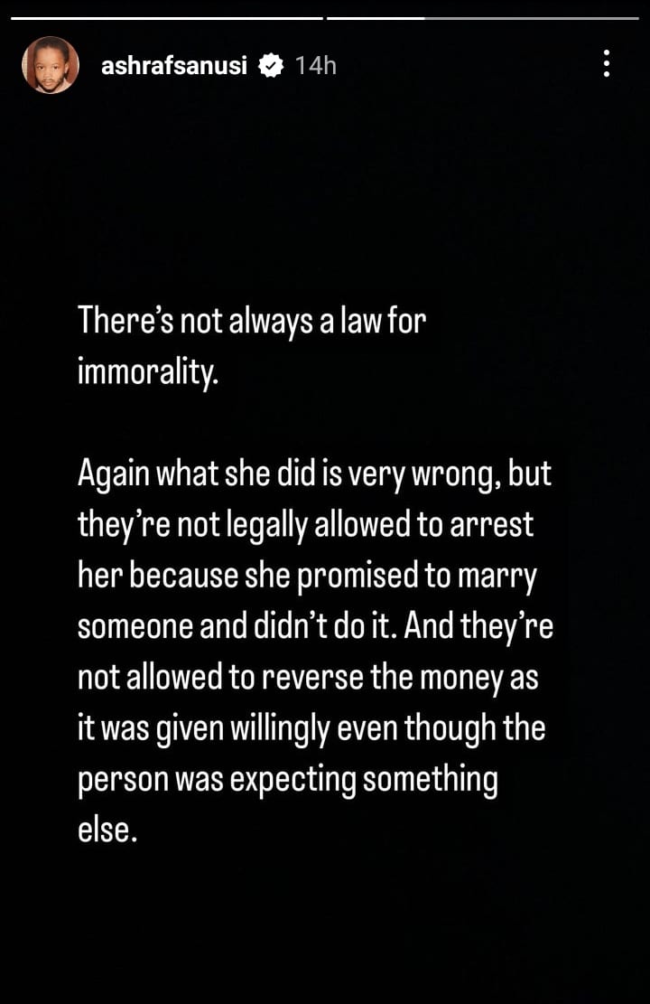 Ashraf Sanusi, the son of former Emir of Kano Sanusi Lamido Sanusi, speaks out after lady was arrested for defrauding a German man of 220,000 dollars after promising to marry him.