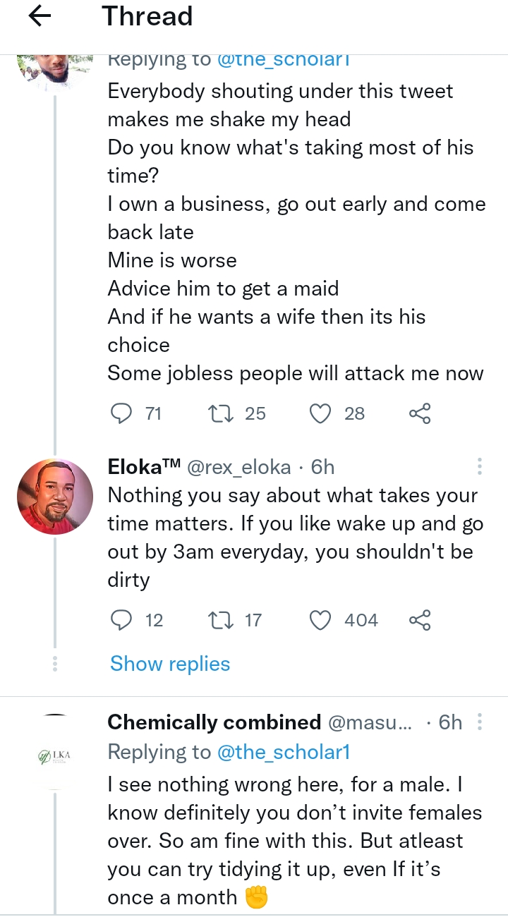 A Twitter user has left netizens in a seething rage after he showed off picture of his room to say he needs a wife.