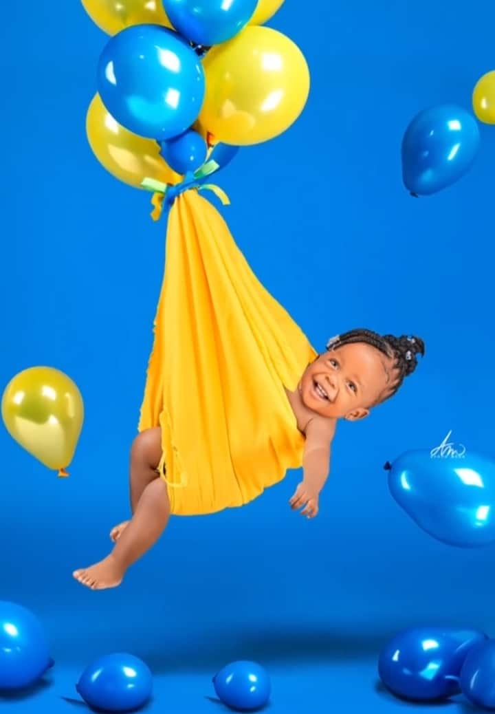 The little girl looked like she was hanging in the air and suspended by some balloons. She also smiled in the final photos.