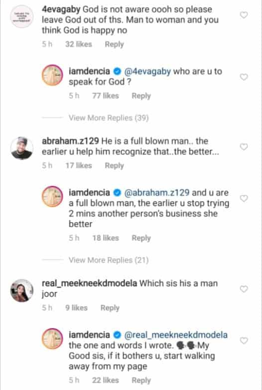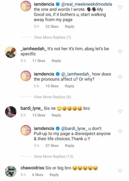 However, some Instagram users who felt infuriated with her caption, reminded Dencia that Bobrisky is a male.