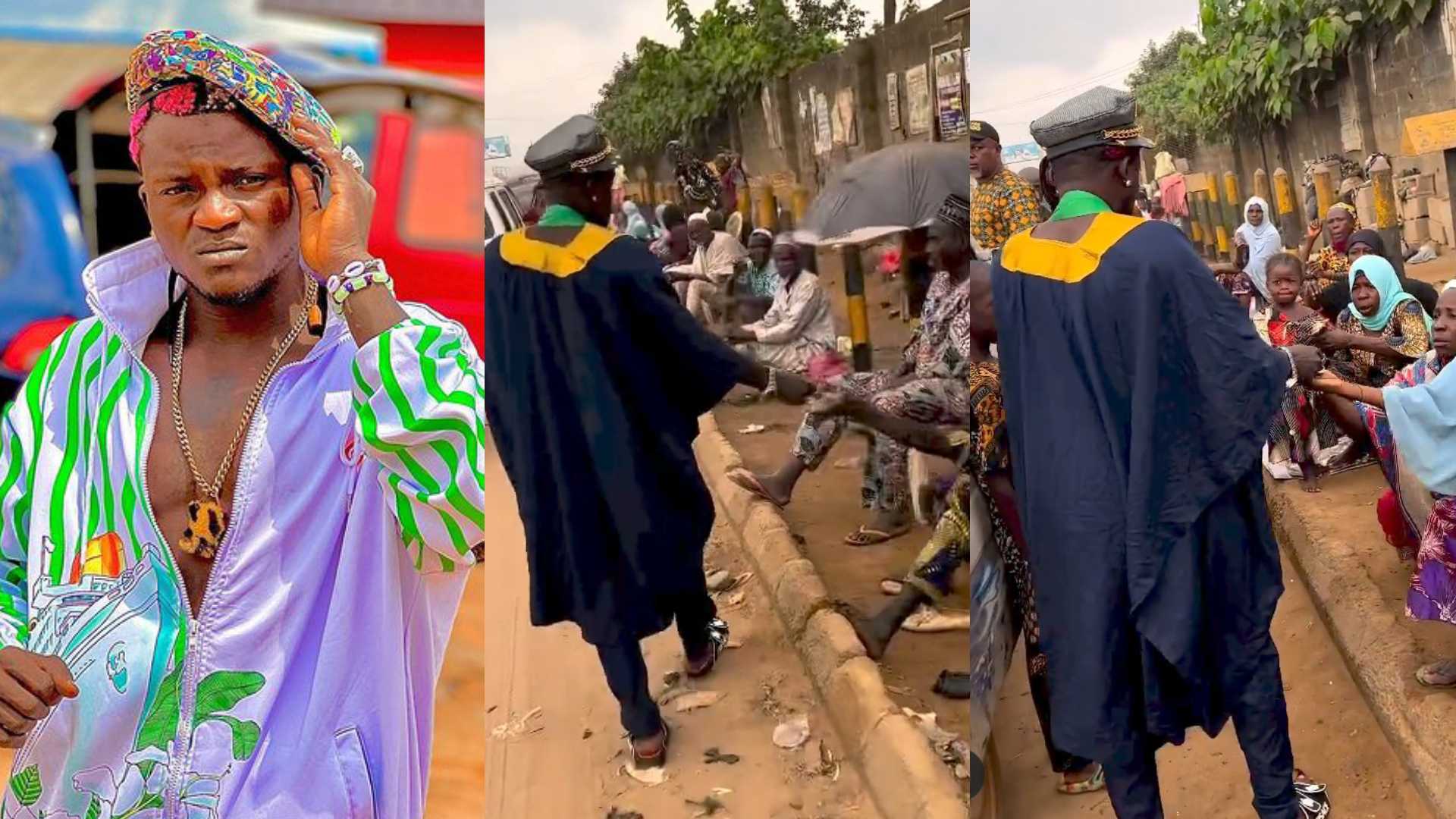 “Why are you gentle lately?” – Reactions as Portable hits the streets wearing Agbada, shares money to roadside beggars (Video)