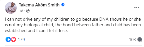 Takema Akom Smith added that he wouldn’t want to lose such father-child bond because of the DNA test.