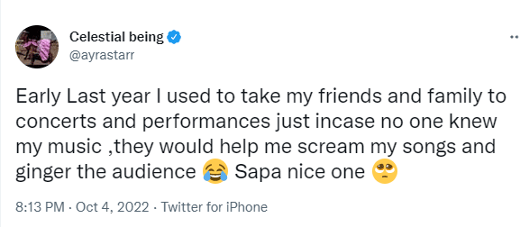 Ayra Starr, who recently released her debut single, Rush takes to Twitter to share a trick that used to work for her before she became famous.