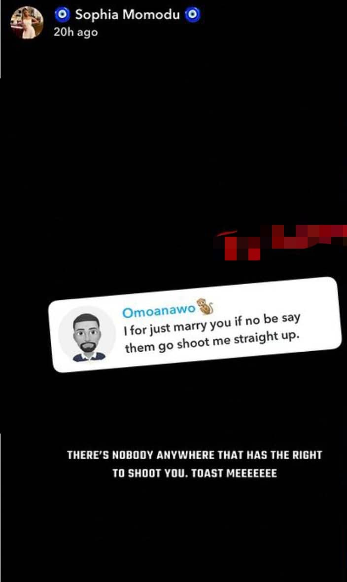 In response to this, Sophia made it known to the admirer and others that there’s nobody stopping them from making their advances.
