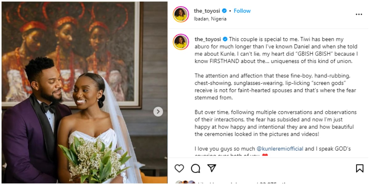 Tiwi and Kunle Remi have been trending for days after their marriage ceremony. The event of their ceremony has been making rounds on social media for days.
