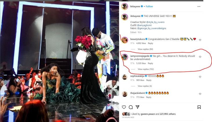 Her endorsement showcased the support and recognition that Ilebaye received from influential figures within the entertainment industry.