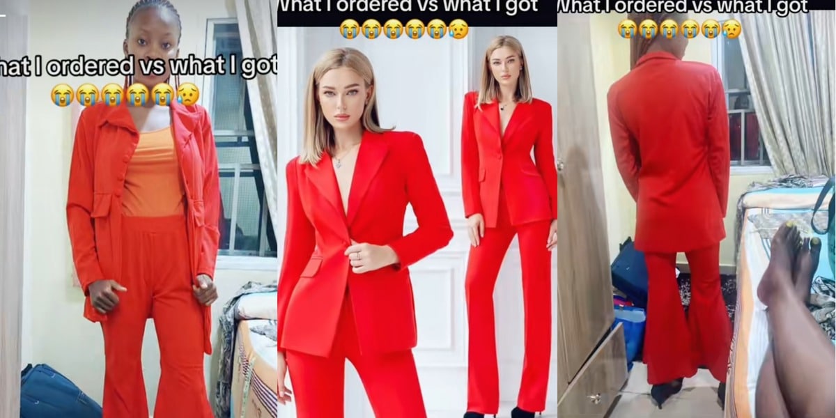 In the video captioned: “What I ordered vs. what I got,” the lady unveils a neatly pressed and ironed red suit, which was her original order.