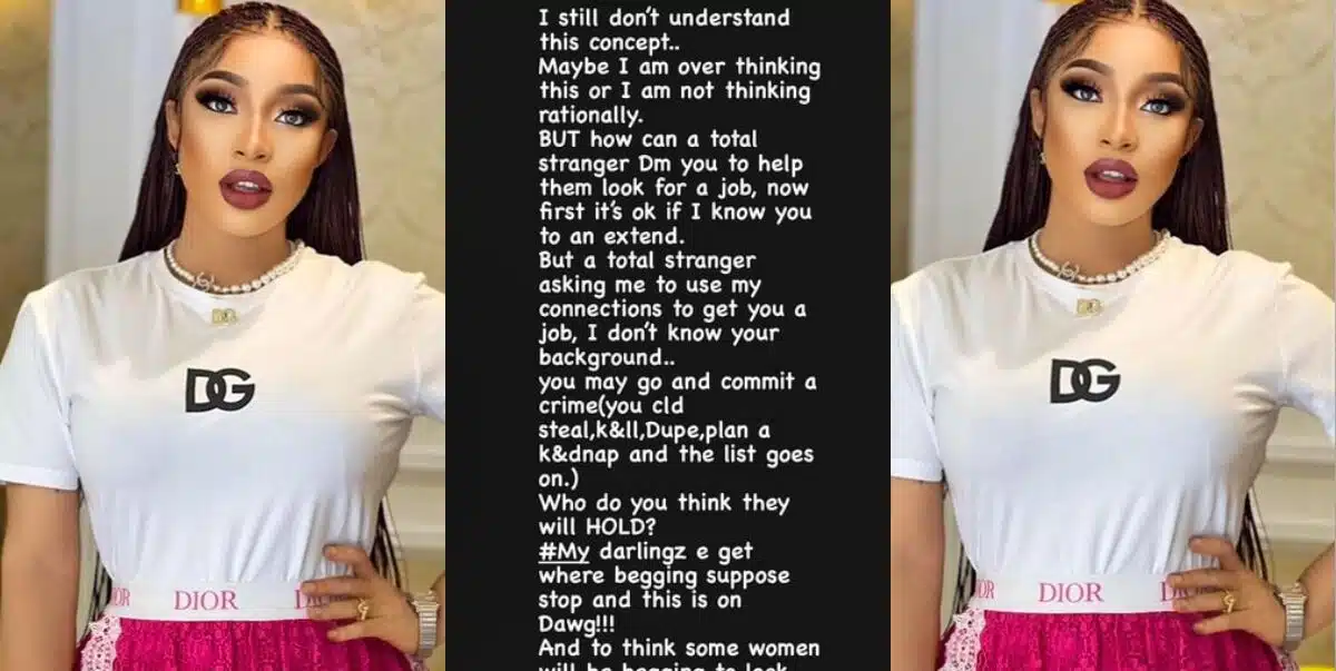 “Why?” – Tonto Dikeh rants as stranger asks her to use her connection to get him a job