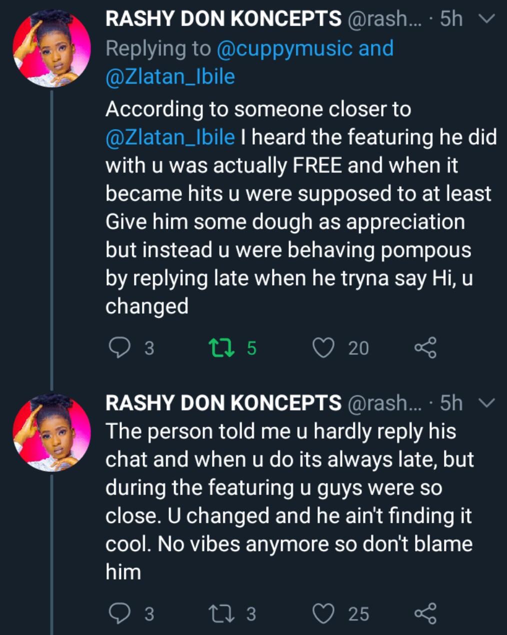 “Replying to @cuppymusic and @Zlatan_Ibile,