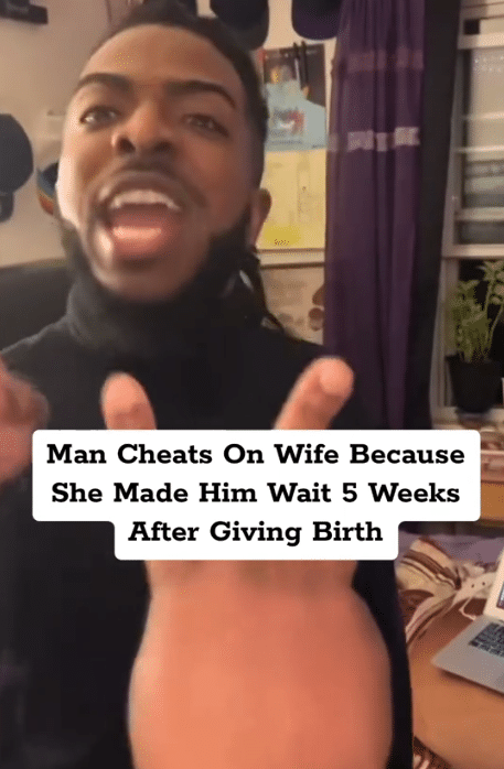 An egoistic husband has sparked a wave of outrage online after a video surfaced of him justifying his actions for cheating on his wife 5 weeks after childbirth.