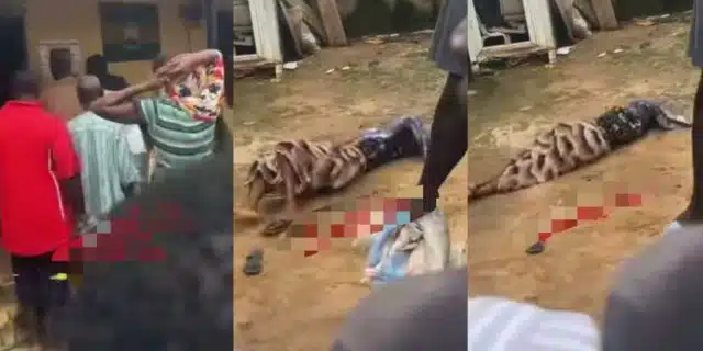 In the video making the rounds online, locals were seen gathered round the victim’s house while his wife was seen rolling on the ground and crying.
