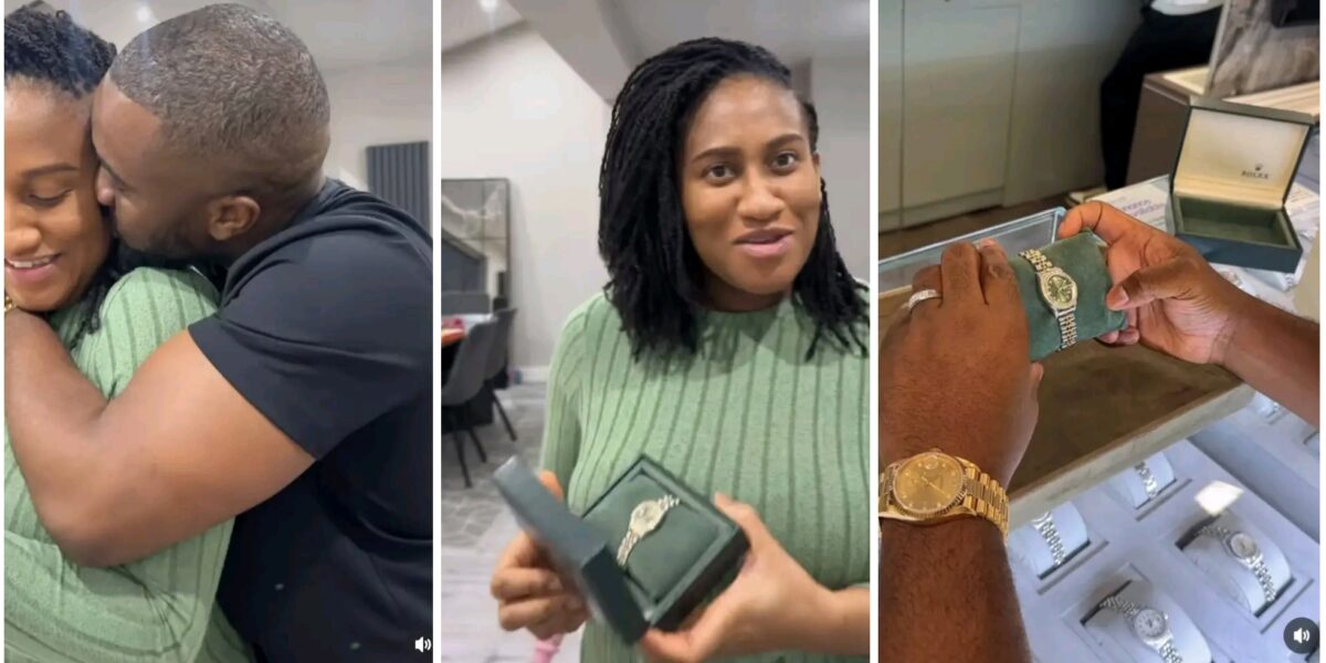 On Instagram, Williams Uchemba shared a video documenting the surprise, from buying the Rolex wristwatch to his wife’s reaction at first sight.