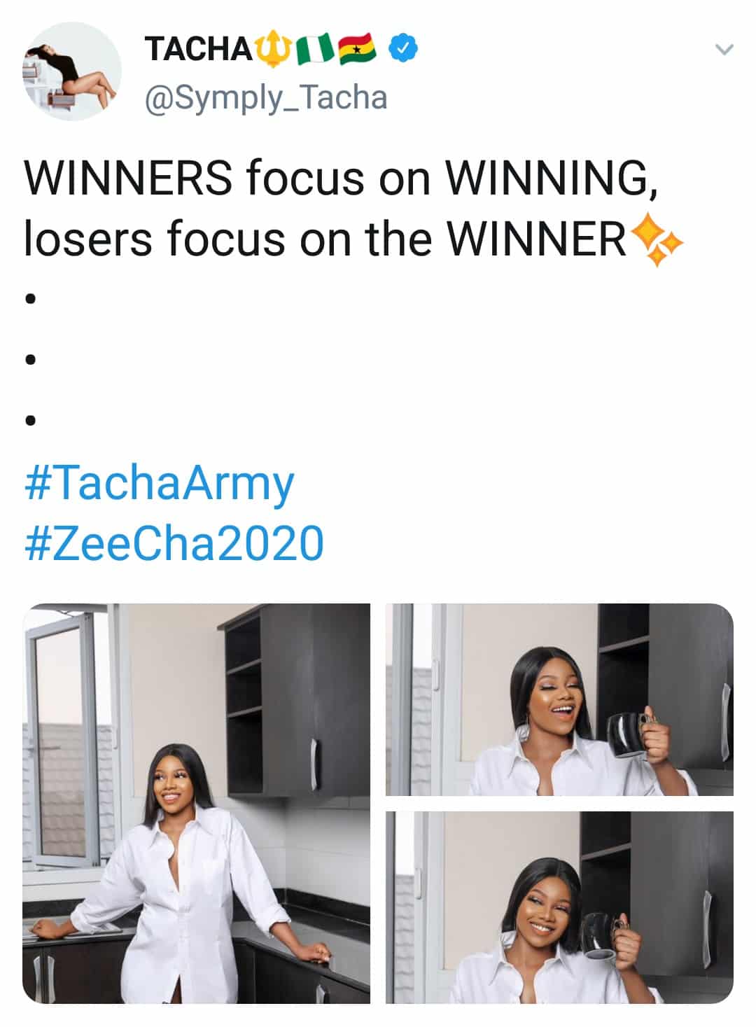 “Winners focus on winning, losers focus on the winner” – Tacha throws shade