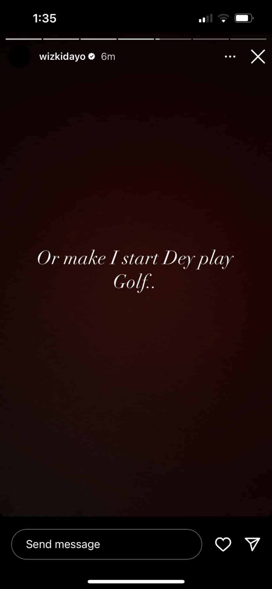 Nigerian singer and songwriter, Ayodeji Ibrahim Balogun, professionally known as Wizkid, has hinted to his fans the possibility of taking a 4 to 5-year break from music to pursue a career in football, golf, or FIFA games.