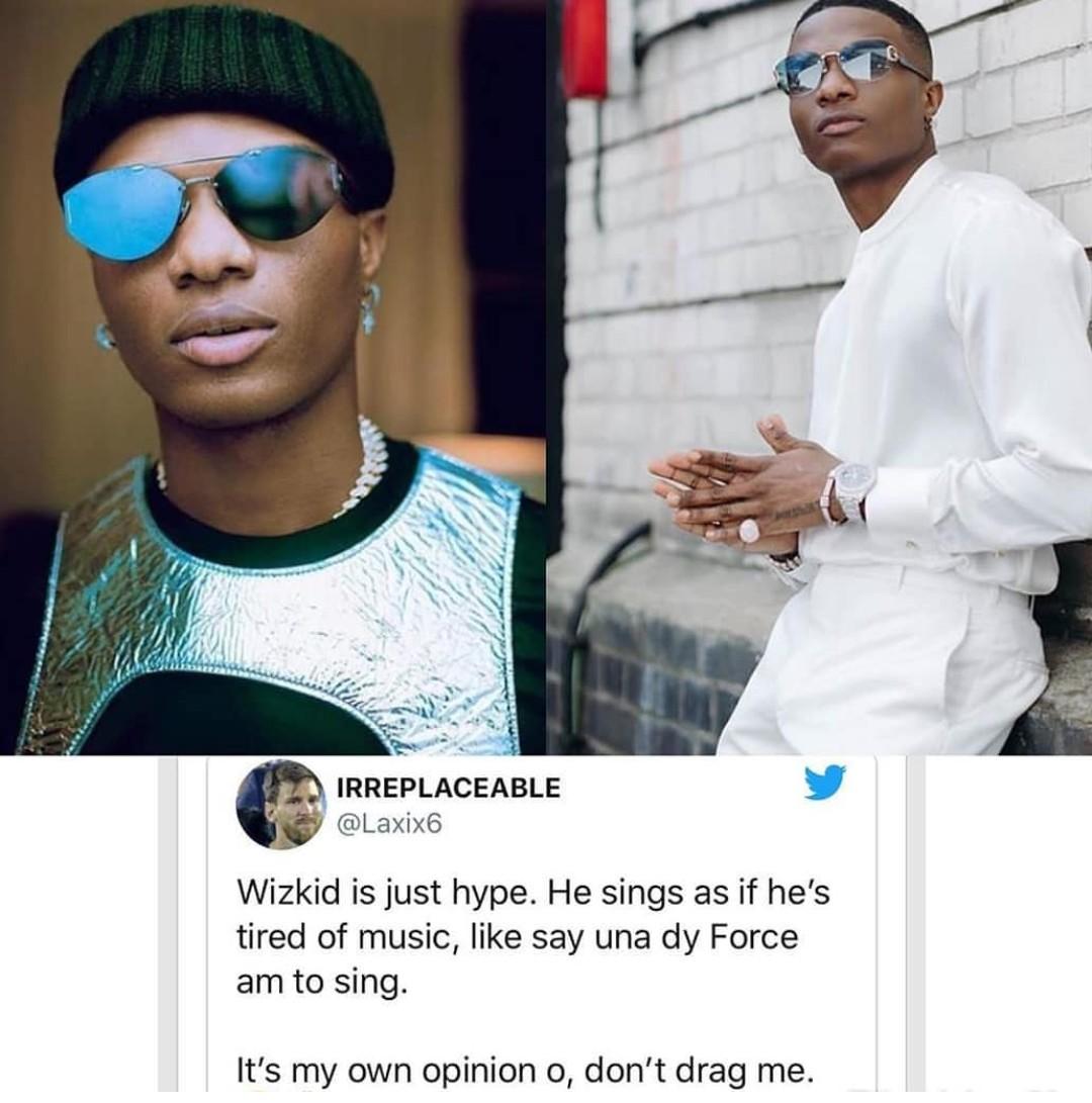 “Wizkid is just hype. He sings as if he’s tired of music, like say una dy Force am to sing. It’s my own opinion o, don’t drag me.”