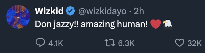 In a recent post via the X platform, Wizkid showered praises on the Record Label boss, describing him as an amazing human.